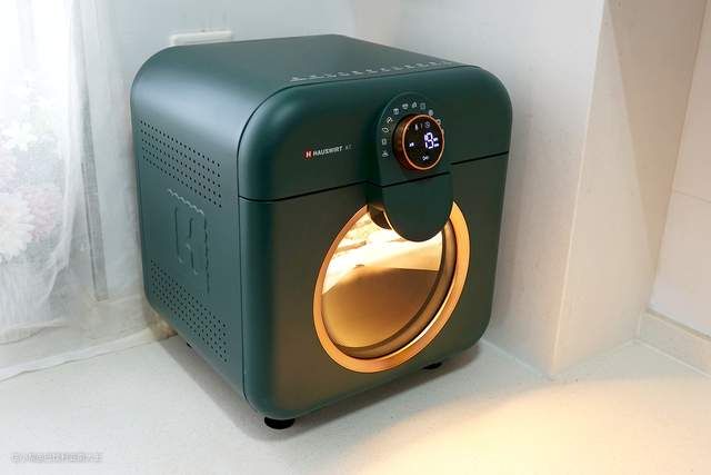 它既是一台烤箱也是空气炸锅,还是早餐机、酸奶机、发酵机、果干机等等…我是先被它的外表吸引的,这类似唱片机的复古轻奢造型着实惊艳。