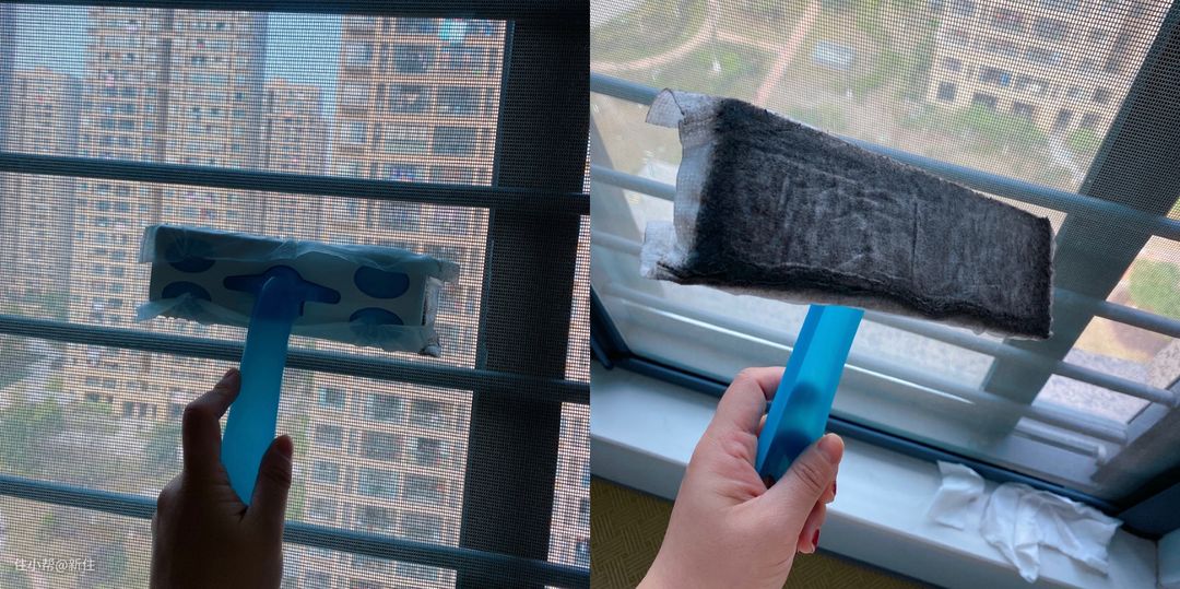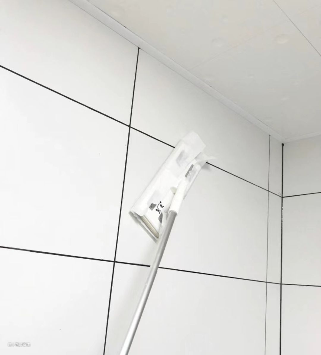 拖把头上放一张湿巾,就能开始擦拭了,顶面、墙面都能够上,湿巾脏了,就用水冲洗一下重复使用,实在用不了了,索性扔掉换新,方便度满分。