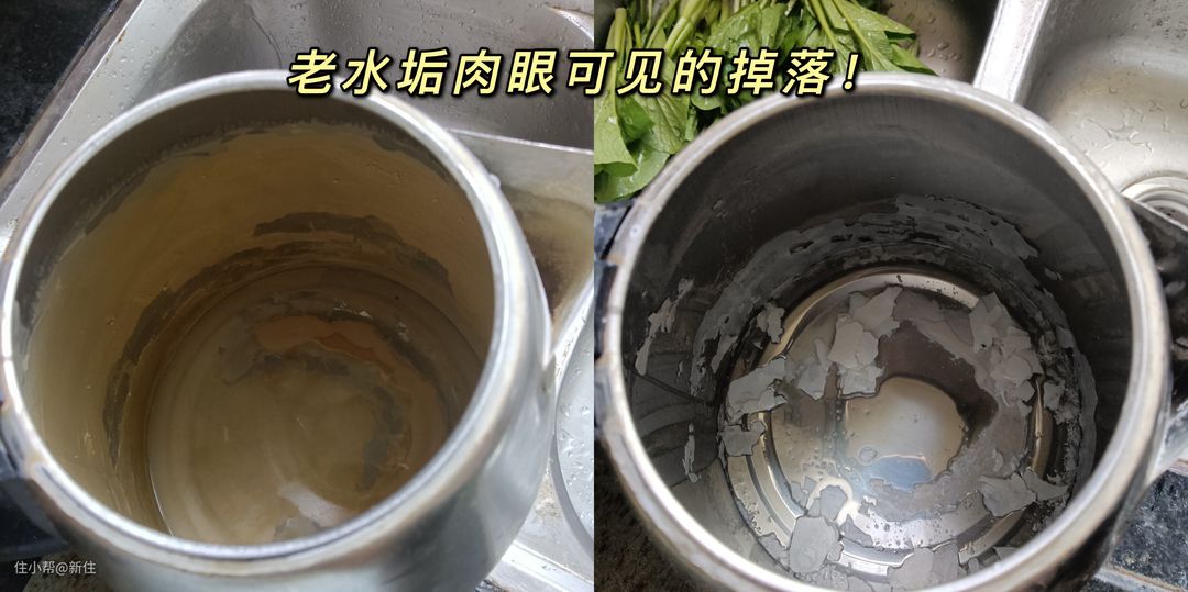 除此之外,厨房的水壶、锅具上的陈年老垢,也能通过把柠檬酸溶解,加热静置,水垢肉眼可见的掉落。