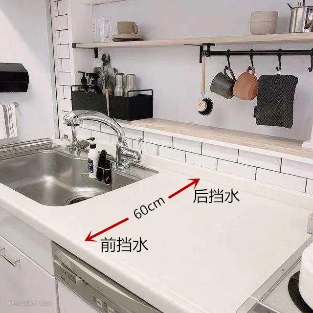 ②台面内外要装挡水板,真的超实用,能防止水槽溅出的水流到地面或木质橱柜上。
