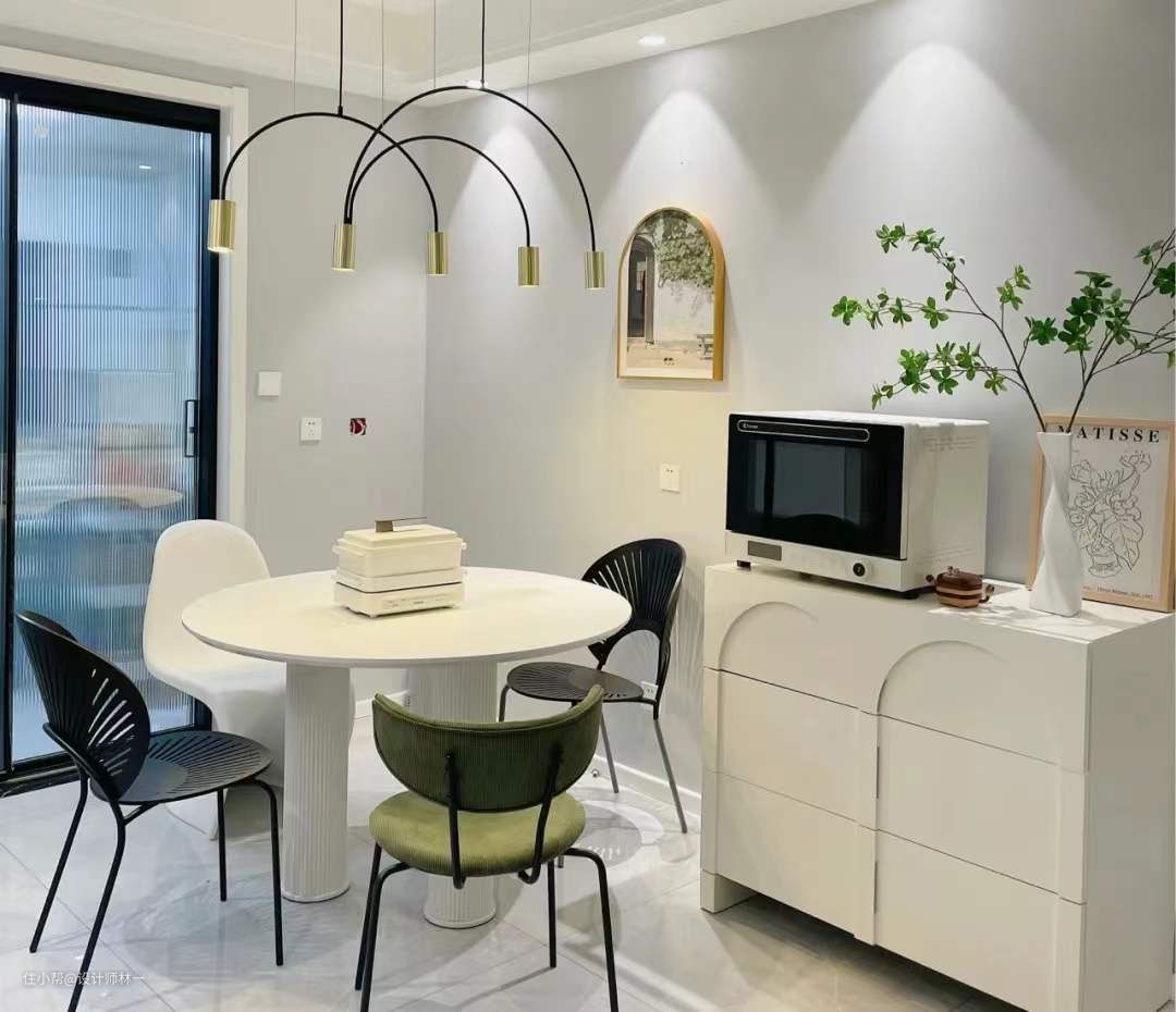 餐厅使用了圆桌,灵活又有氛围感,也不怕小朋友撞到桌角,一家人围在一起吃饭的感觉非常温馨。