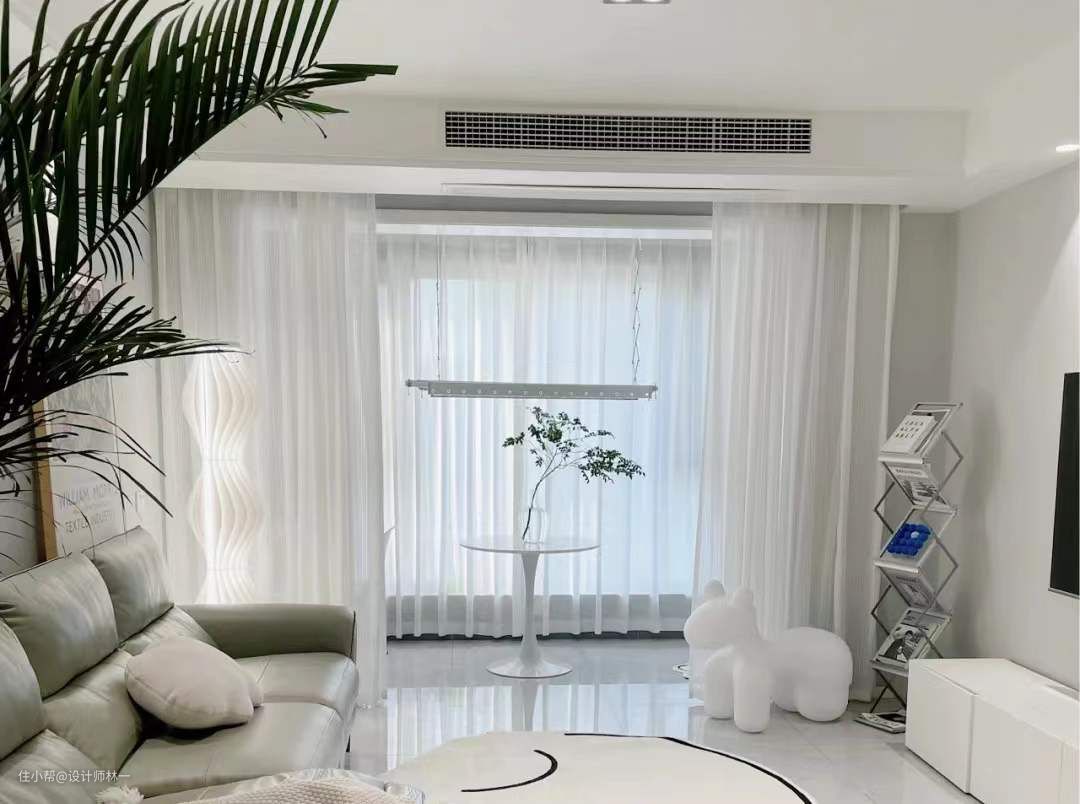 窗户处使用了透光不透人的白纱,素净的同时又显得屋内又大又通透亮堂
