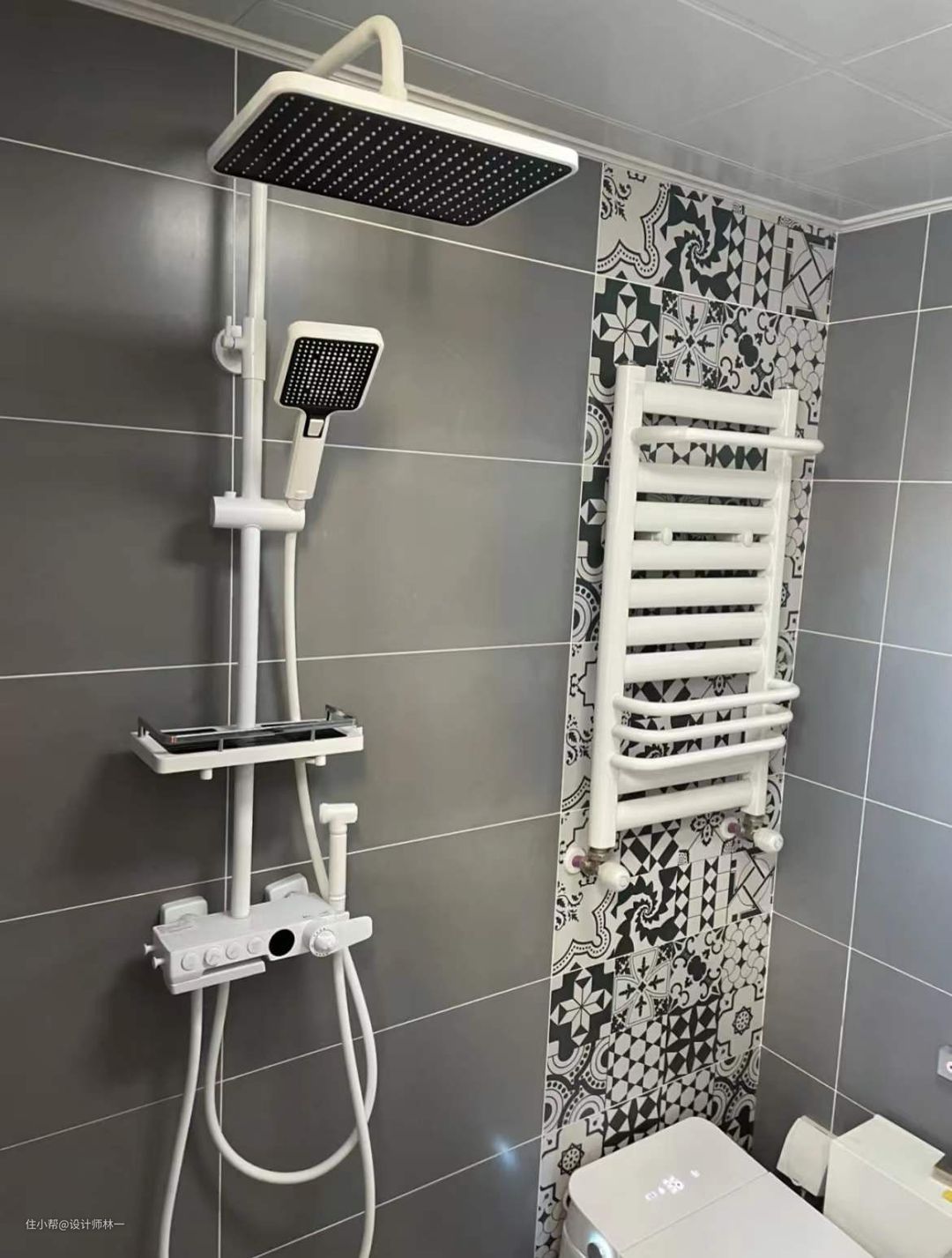 马桶区墙面做了花砖的设计,醒目、别致又实现了视觉分区的作用。