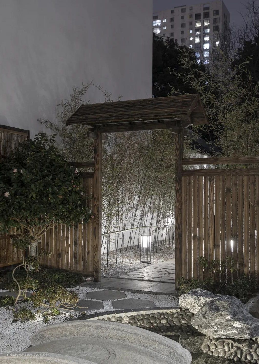 走廊的设计上,以江南瓦片,沉稳木质,自然石材进行装饰和点缀,将传统的庭院特色全面的还原,江南月下,宁静夜晚,自然惬意。