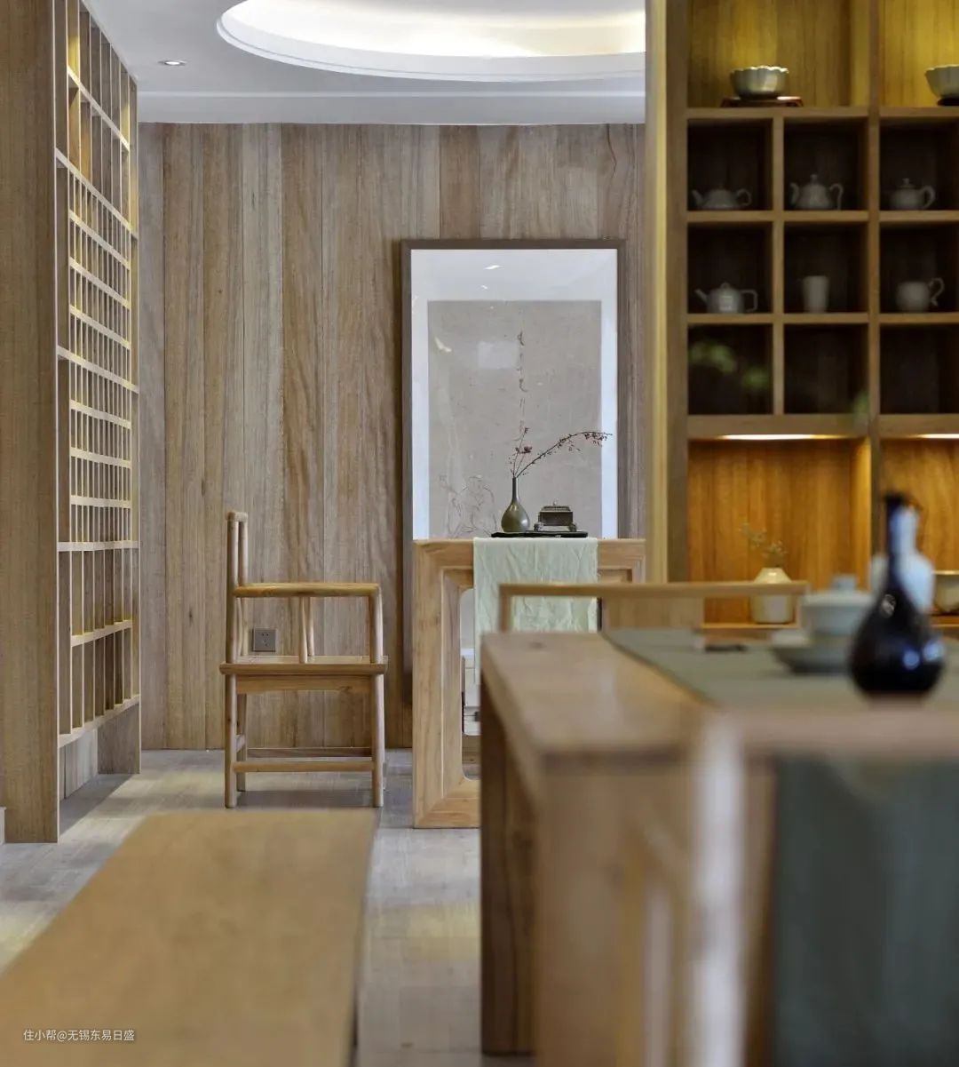 也可以根据实际情况改成茶室,利用它优越的地理位置和采光通风条件,添置上茶桌、茶具,在搭配少许装饰物,多余的入户门空间也可以变成煮茶论道,接待亲朋好友的风雅之所。