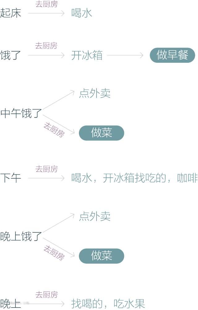 这么算下来,我们每天高频进出厨房,实际上需要真正烹饪的时候最多占到3个频次(工作日还会变成2次),那么大多数时候我们在干嘛?