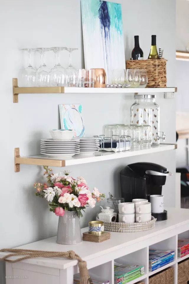 所有的杯子、罐子、好看的酒瓶……都可以摆出来。