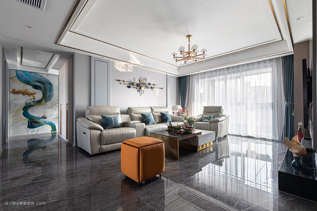 “于极简处见繁华”是轻奢风的最高奥义,设计师以简约的硬装为基础,通过材质、色彩的运用和软装的搭配将轻奢风打造得淋漓尽致。#你家客厅是怎么布局的?