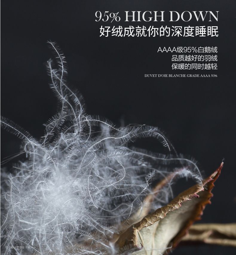 SIDANDA的鹅绒被,填充的绒子有95%的含绒量,而且选用的是AAAA级的白鹅绒,蓬松度非常好,160支精梳棉贡缎面料也不但很舒服,而且防钻绒效果更好,所以即便是长时间使用,也不会出现房间里到处有绒子的现象。