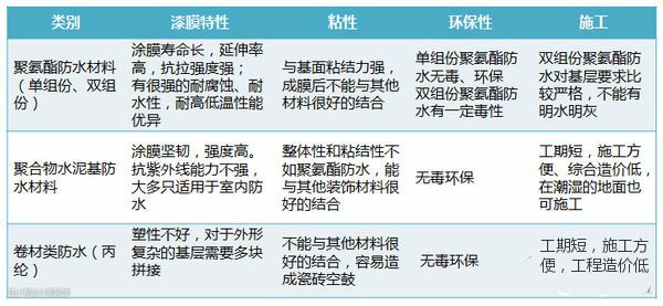 家装市场上常用的防水材料是防水涂料,主要包括聚氨酯防水材料、聚合物水泥基防水材料以及卷材类防水等,其中聚合物水泥基使用比较多,已经逐渐成为防水涂料市场的主角。