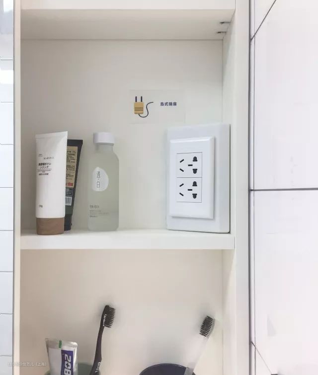 但是如果插座在台面上不仅不足够安全,还影响美观。住范儿的产品设计师们考虑到了这个贴心的细节,在颜值革命2.0中就在镜柜里内嵌了插座,非常方便充电。