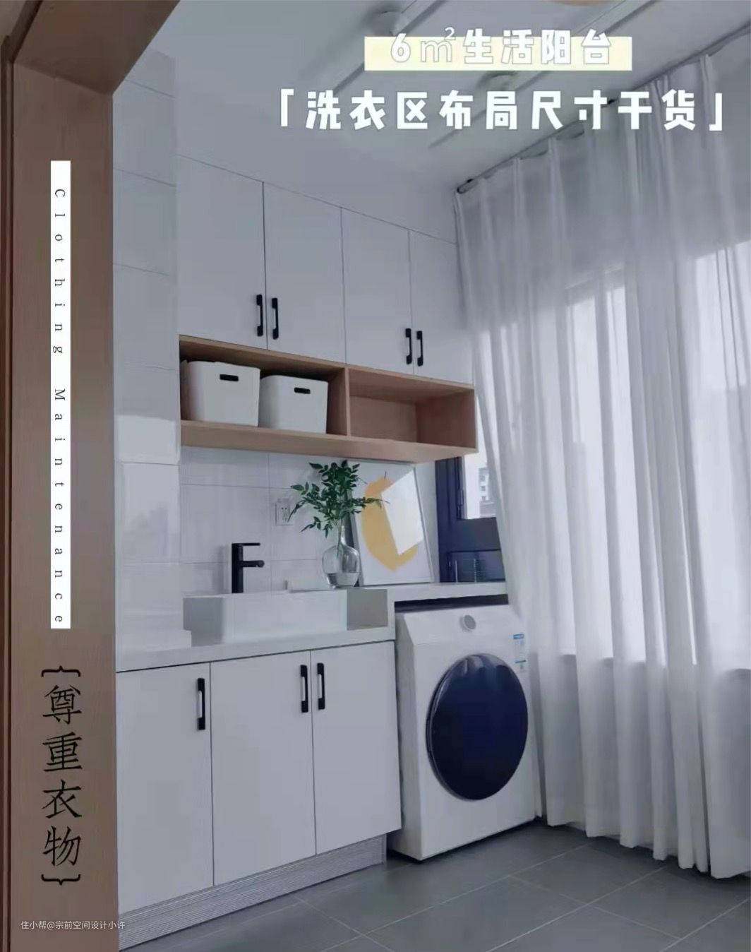 ✅晾衣区设计:选择烘干一体机,白色手摇晾衣架简约美观,承重可以,够日常生活使用。