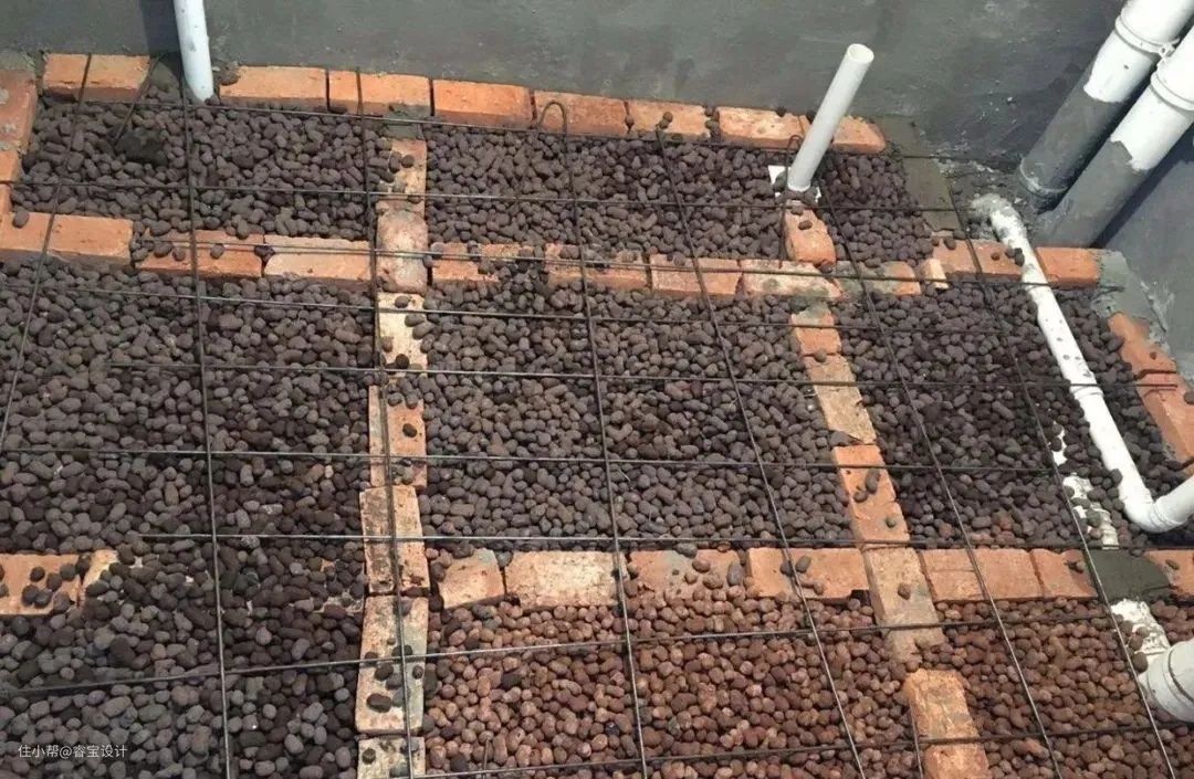 确定了马桶位置将管道设置好以后,然后在开始回填之前先做好规范的防水施工,下沉式卫生间需要做好2次防水,地面连着到高度至少为400mm的墙面都要做好防水,回填最好使用陶粒或者新型的发泡水泥。