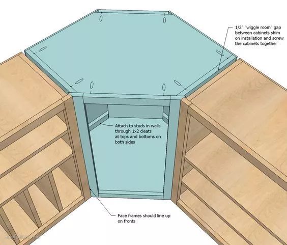 另一种转角柜做了异形处理,可以直接装平开门,这样里面既能装360°的转盘,也能装D型转盘。