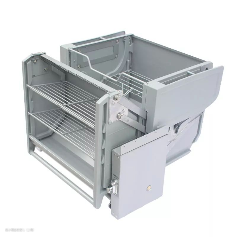 内部空间是长方形的橱柜一般只有一道门,用起来很不方便,所以五金都做的是能拉出来的款式,价格上比旋转拉篮要贵,而且越能全部拉出来的就越贵。价格从高到低排列一般是全开小怪物>半开小怪物≥飞碟>180°转角拉篮。