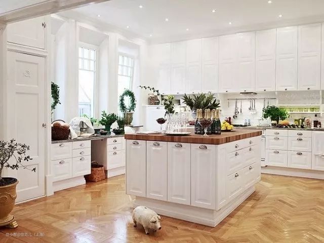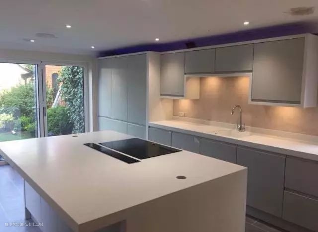 我们今天要说的中岛则属于硬装,把房子翻过来也不会掉的那种,尺寸通常在120*60以上,和橱柜使用的是相同的柜体、五金和台面材质。