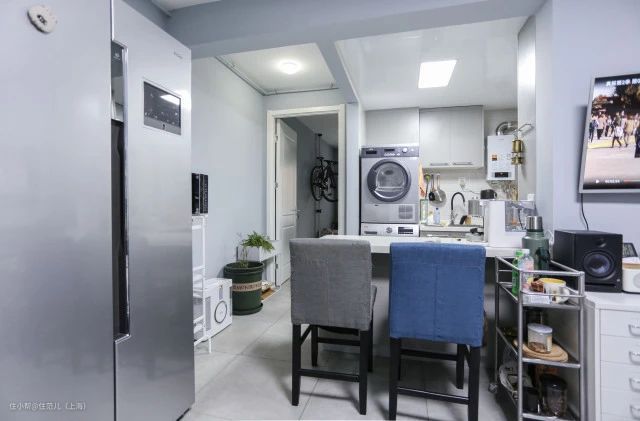 上 这套一室一厅老公房只有58㎡,也可以放下一个中岛,不过屋主从预算和实用角度考虑,放了张餐桌,案例故事可以在文末拓展阅读看到 图源:住范儿自摄
