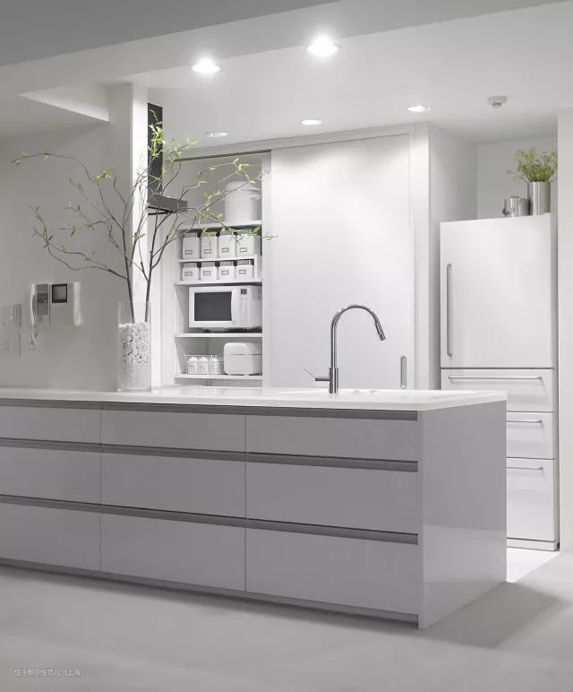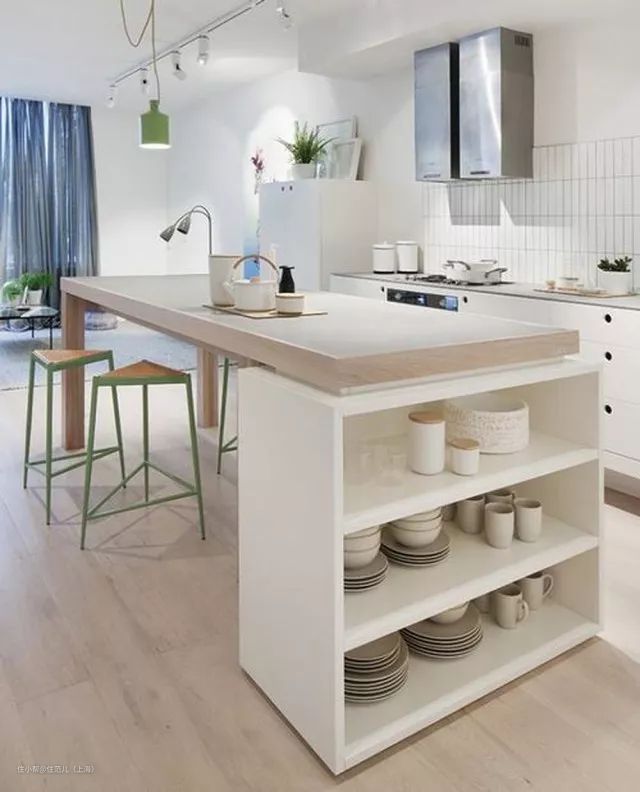 实在不行,你还可以拿着外网美图的款式,找本地工厂定制一款纯收纳的移动中岛,这下更不用敲墙砸地了。