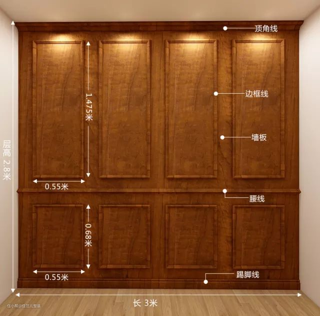 所有的墙板、踢脚线、腰线都会做成固定尺寸的模块,在现场直接组装,长出来的裁掉就行。