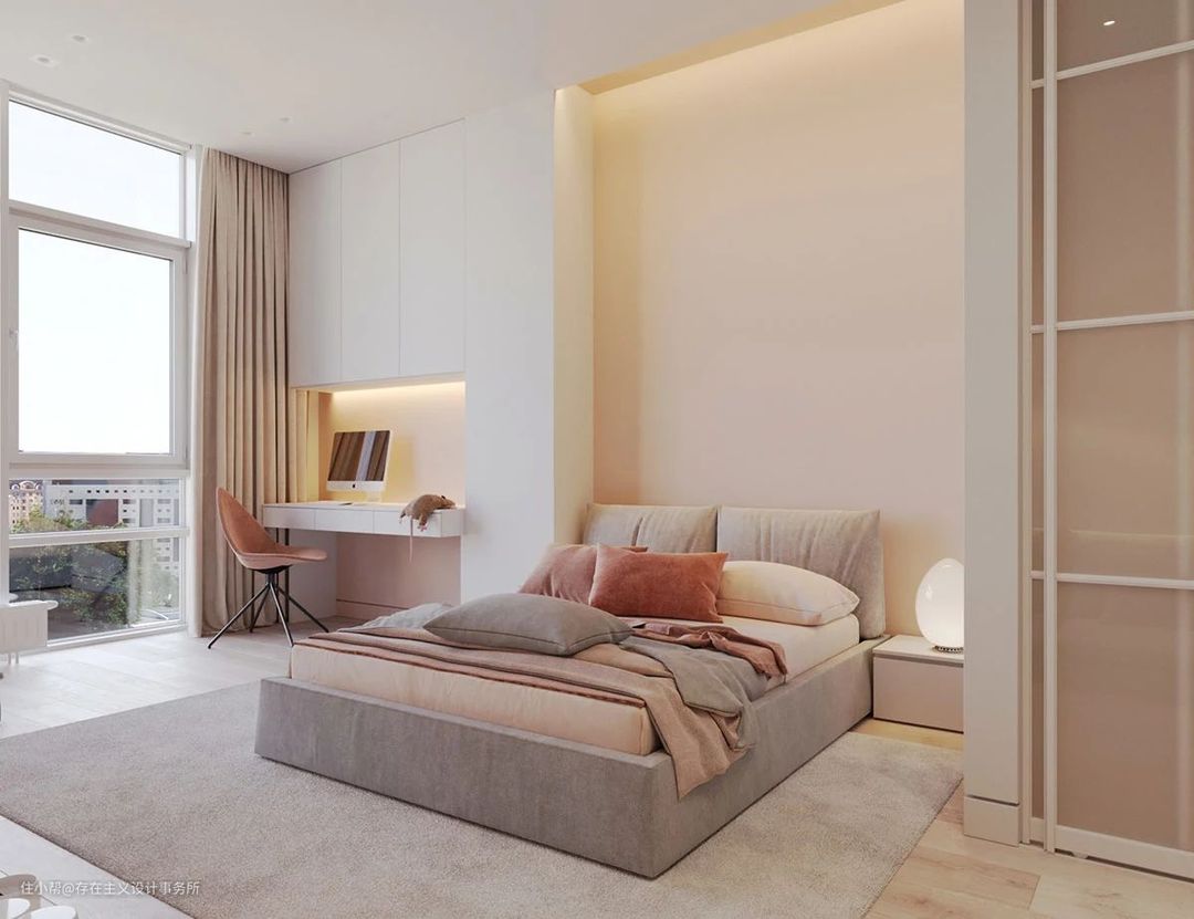 这次的案例屋主是个精致的艺术系小姐姐🖼她从小就喜欢粉色希望自己的房间是粉粉嫩嫩的,暖色调的卧室是在是太治愈啦~粉嫩嫩的配色真的太少女了