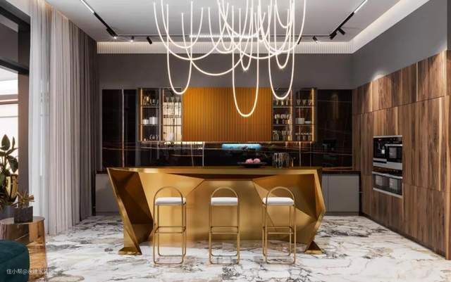 厨房的色调以金色作为点缀