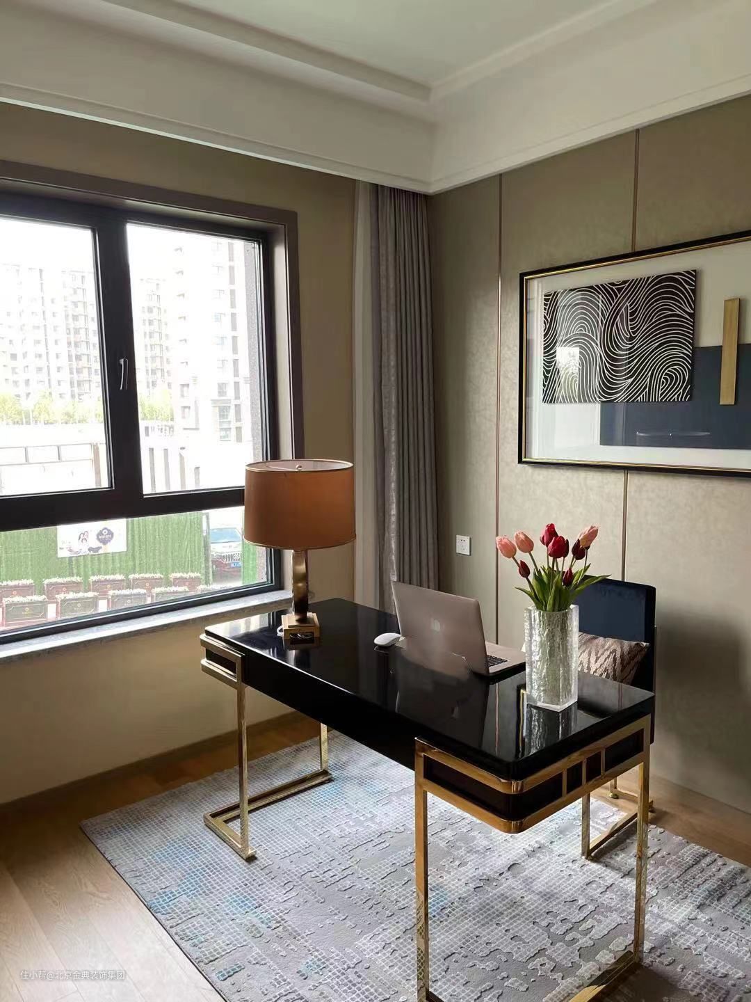 目前暂时做书房功能,业主计划日后准备生宝宝了,就将书房改成儿童房。所以目前书房不做过多设计装饰,只需要办公所需的桌椅和收纳用的书柜即可。