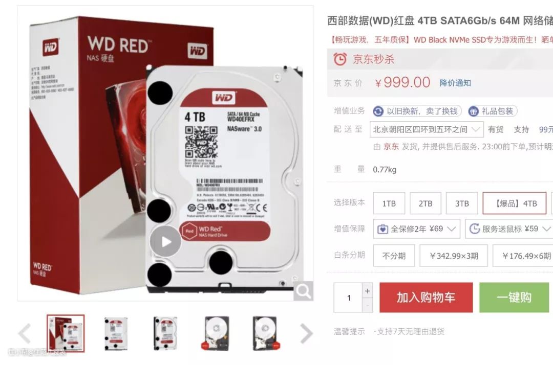 上 戳开看大图,群晖最便宜的双盘位NAS(型号DS216se)+西部数据4TNAS专用硬盘*2,加起来3000元出头,差不多是一个Michael Kors皮包的价钱 图源:jd.com