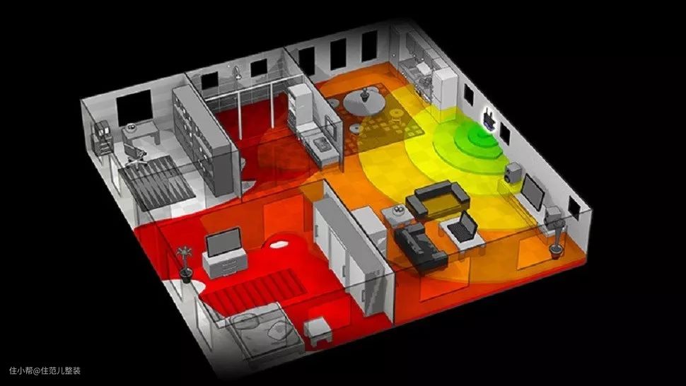 上 每个人家的Wi-Fi信号分布情况差不多都是这样的,客厅放路由,卧室差点收不到网 图源:Kim Komando Show