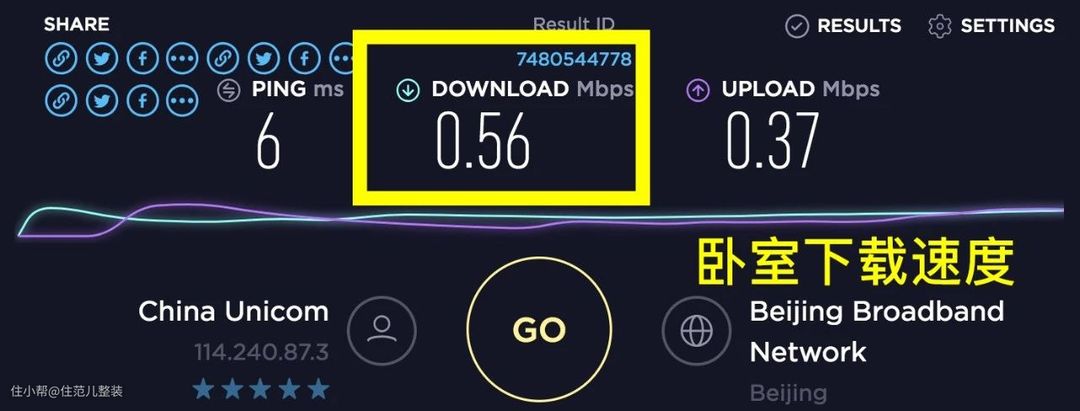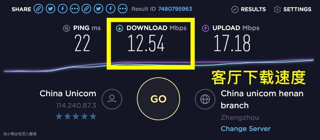 上 我们家路由器放客厅,上图是客厅网速,下图是卧室网速,差距太可怕 图源:住范儿自摄