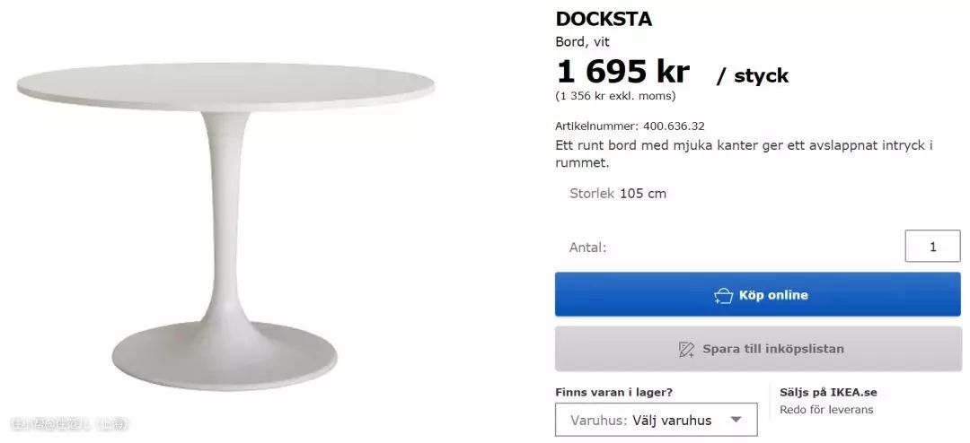 上 瑞典克朗兑换人民币,大概打个77折,图源:ikea.se