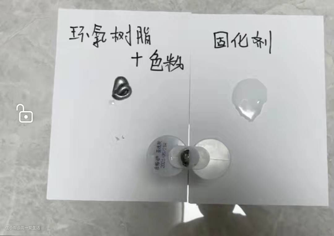 美缝剂:主要的成分是环氧树脂、固化剂、色粉。