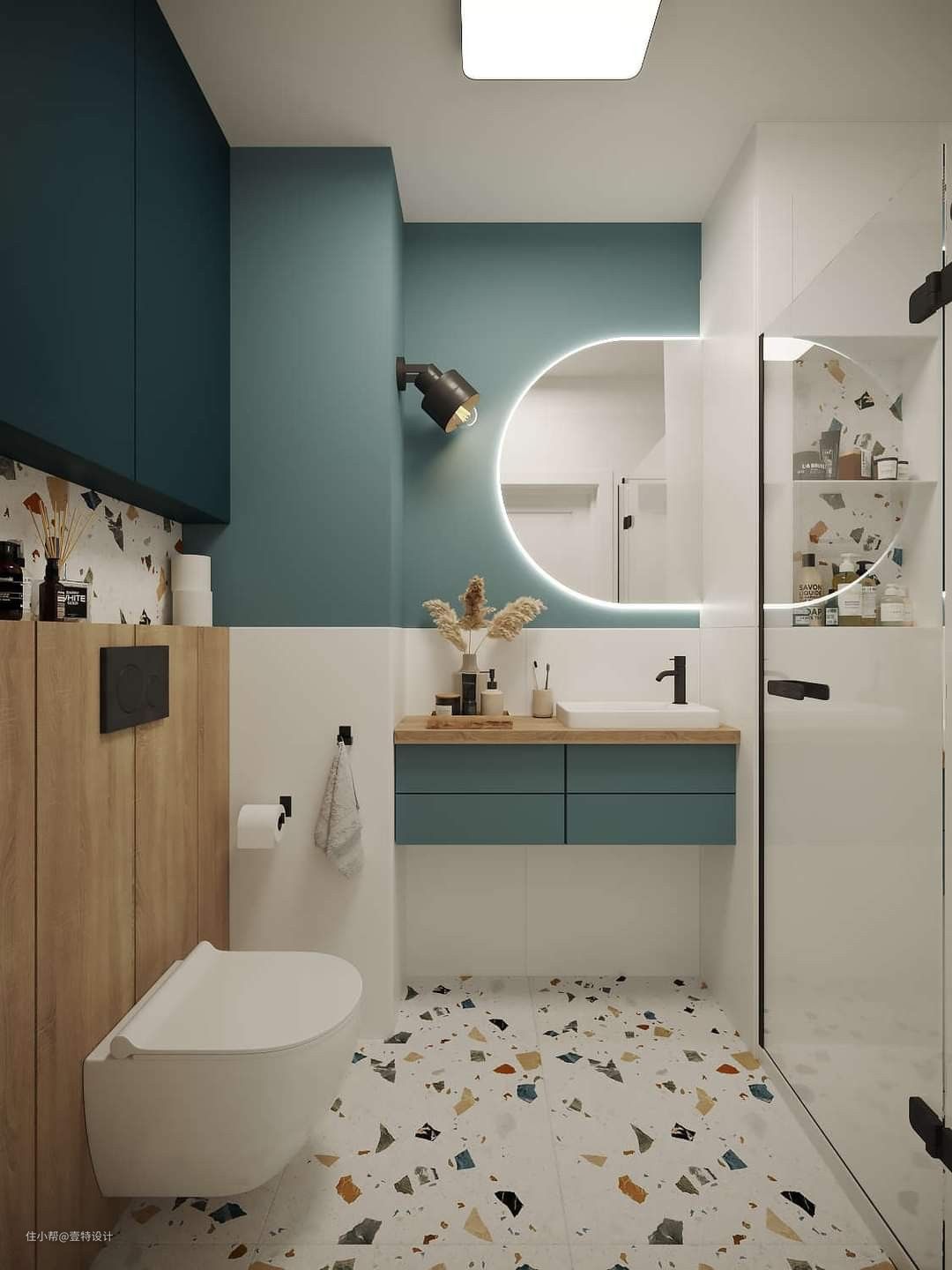 由于暗卫生间没有窗户,原来灯光的设计尤为重要,只要灯具选的对,一秒打造宽敞明亮又舒适的卫生间。