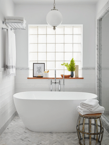 浴室墙面非承重墙的情况下,可以试试将不透光的墙面敲掉,安装玻璃门或玻璃砖墙,不用再操心灯光的复杂设计,直接在满足采光的需求上走了一条大捷径。
