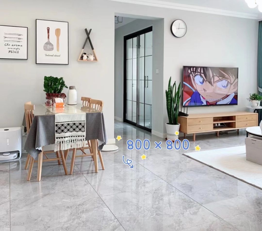 现在去市场上看,很多商家都会推荐1.2x0.6米的瓷砖,说是铺着大气,但其实相比800x800的,一块只差了0.08个平方,还贵那么多,真心没必要。