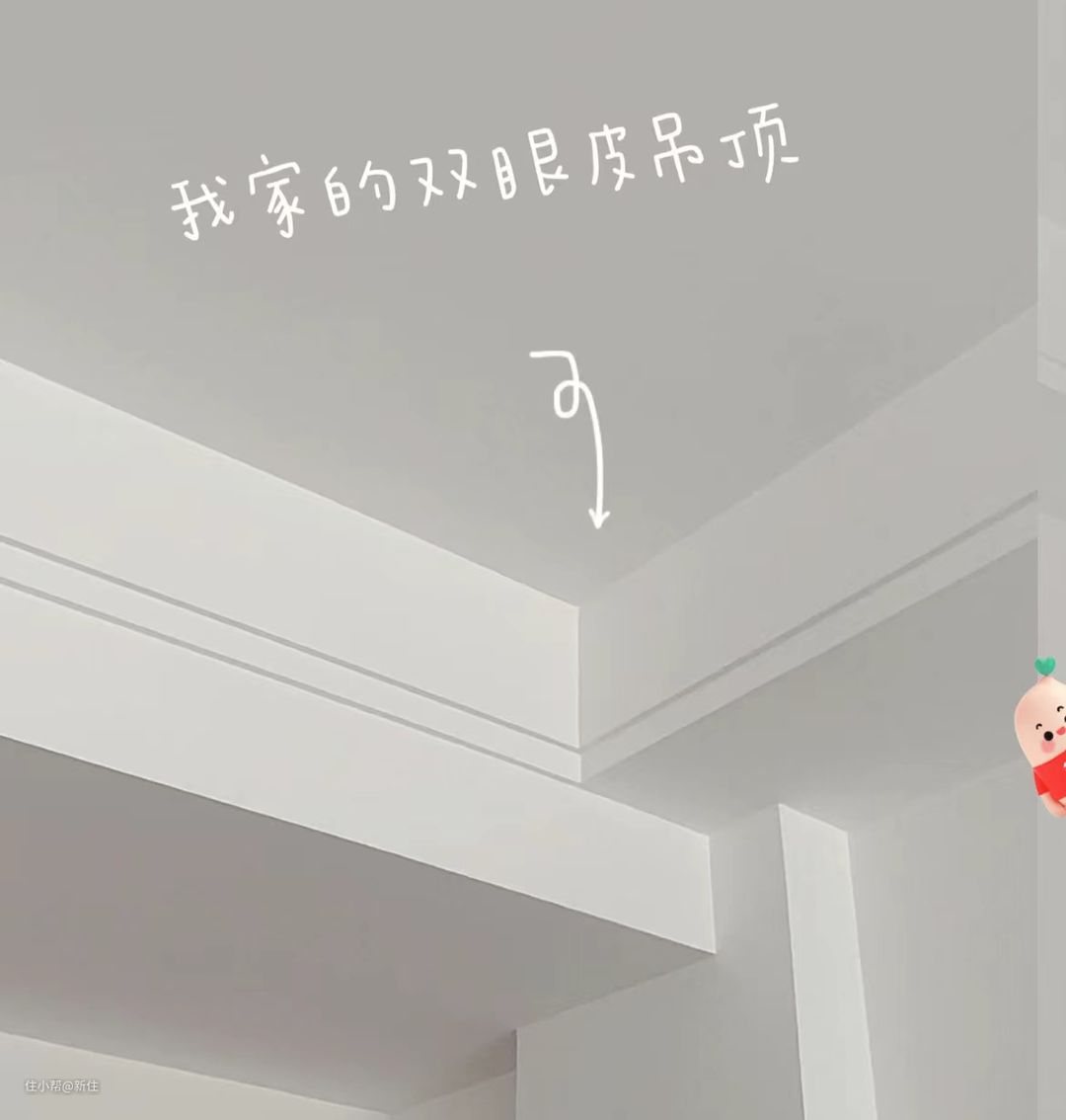 双眼皮吊顶也有不同做法,有现成的石膏线,也有现场木工双层板做法,看自己的喜好及预算来定就行,区别不大。