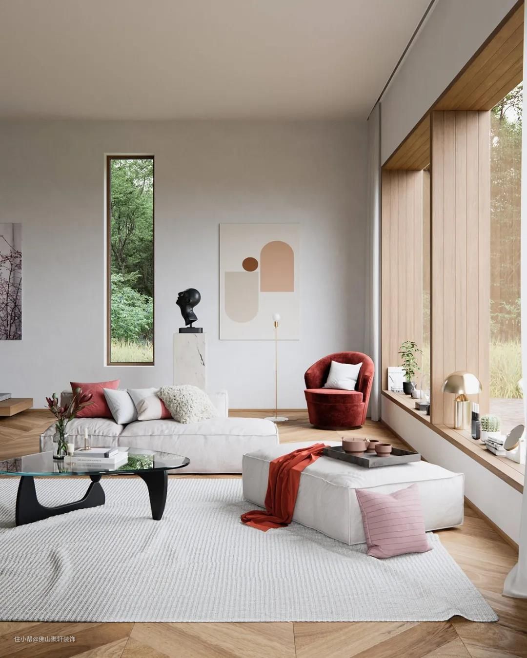一个沉静而充满能量的色调,运用到家居中既风格百搭,又能自成一派;还能营造氛围,消除紧张感,调节空间。常见的有北欧风、简约风。