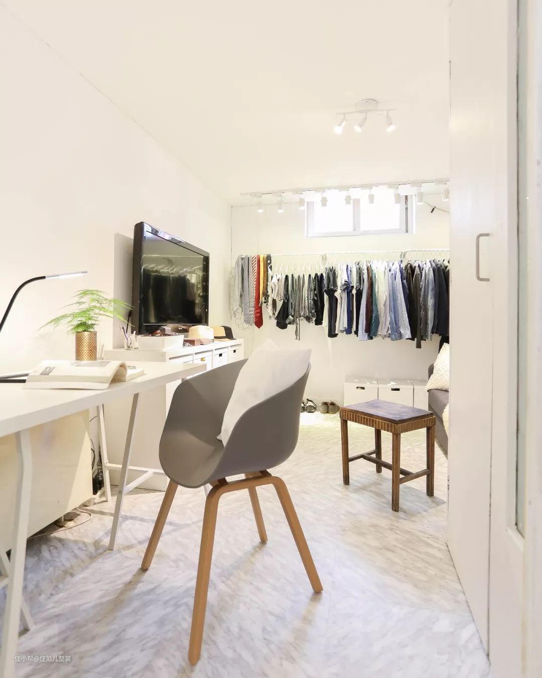就一张床一个衣柜,什么化妆台呀、写字桌呀,有条件都不要放在里面。
