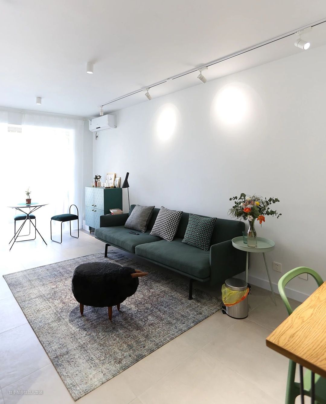 ▲ 中等大小的客厅,走平行两列轨道灯就够用了,中间的明装射灯是作为补充