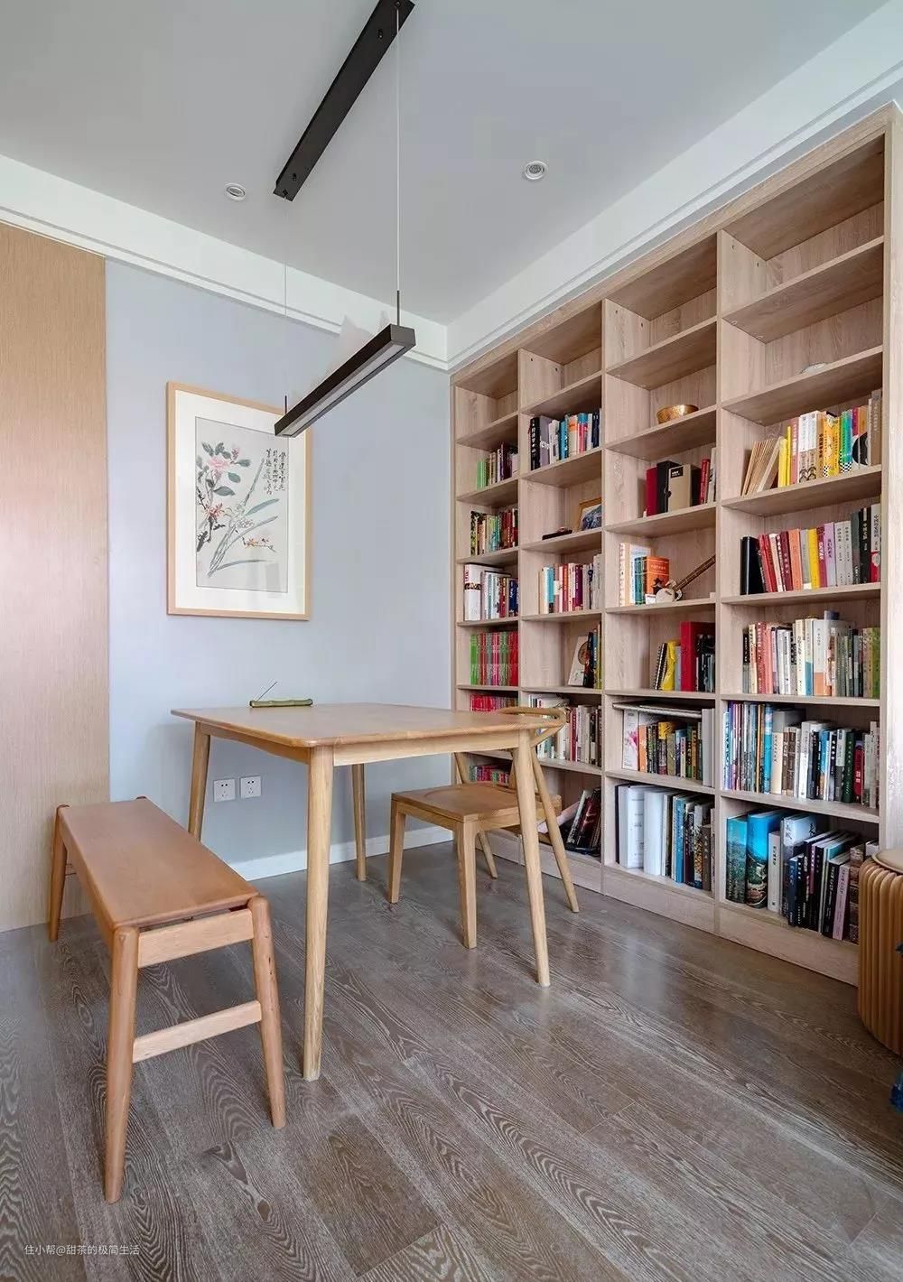 ②餐厅定制顶天立地的大书柜,用来收纳女主的藏书;