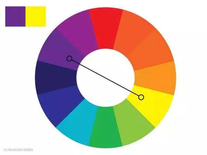 撞色,也就是日常所说的互补色。是指色轮上大约成180°对角的颜色,比如蓝色和橙色,红色和绿色,黄色和紫色。互补色的对比十分强烈,在颜色饱和度很高的情况下,可传递十分震撼的视觉效果。