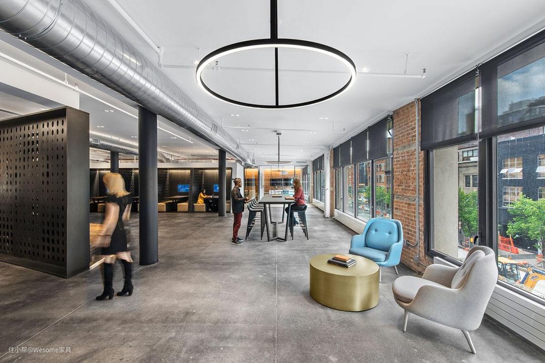 在工作环境中,随处可见的钢铁构体和办公家具,