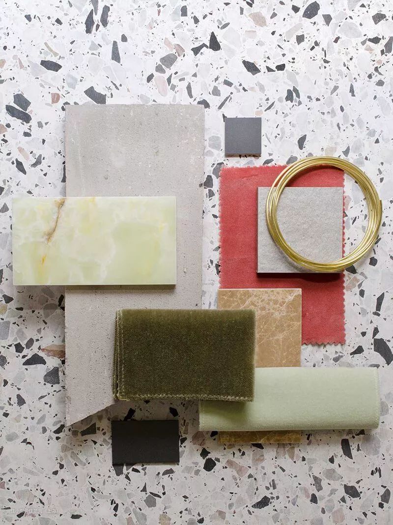 大家也可以从材料出发,积攒起自己喜欢的样品,把样品放在一起,看看效果。没有样品的可以用彩纸来替代,比如墙漆。