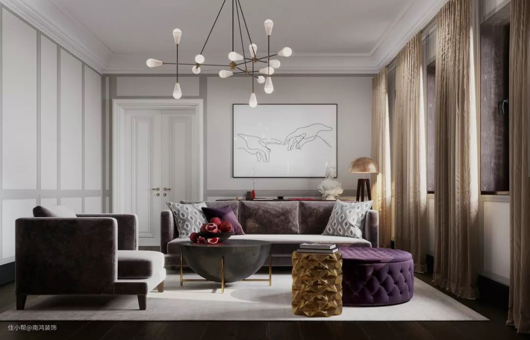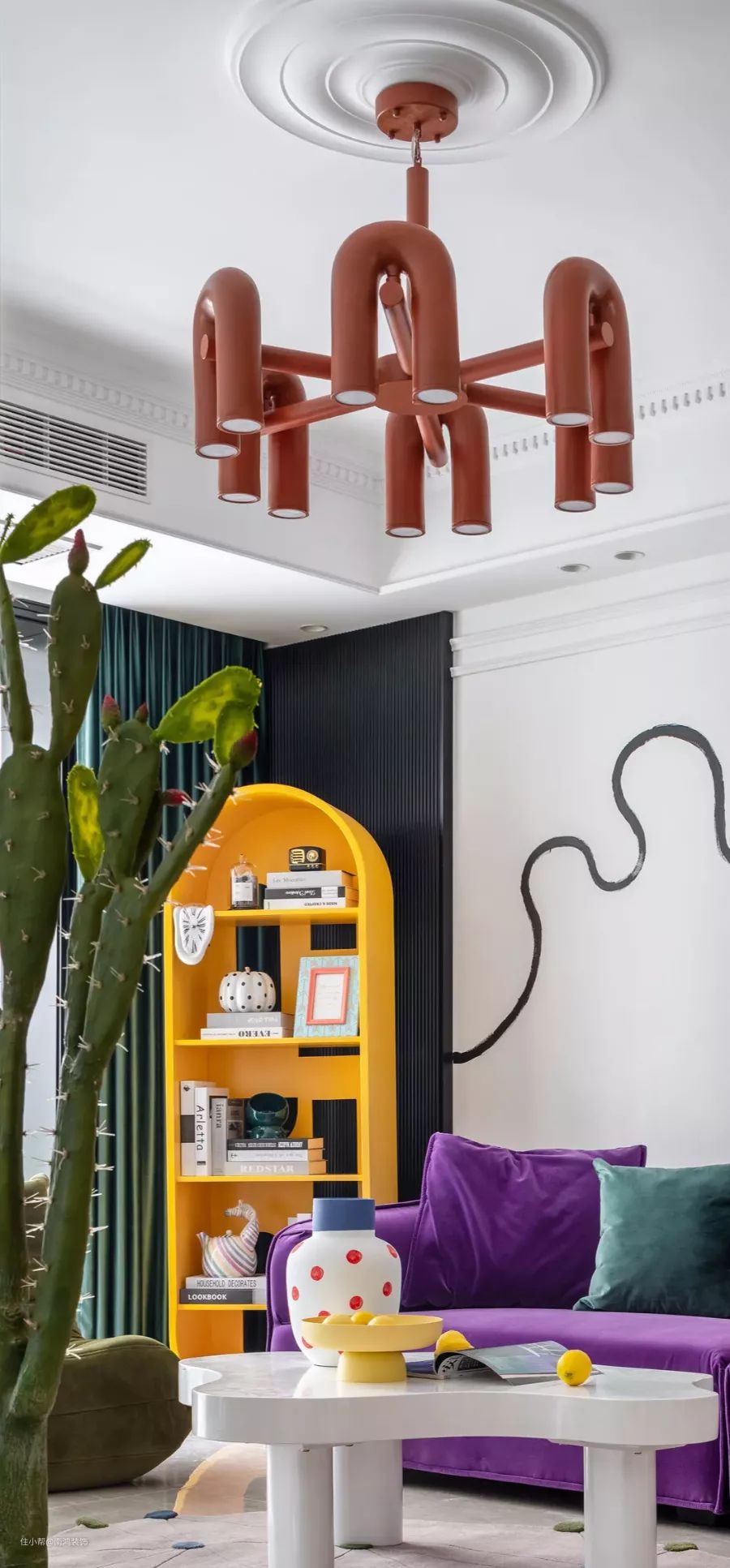值得注意的是,紫色的运用还是需要谨慎,大面积的深紫色会让空间的整体色调变得深沉,产生压抑感,所以,一定要注意色彩面积的把控哦~