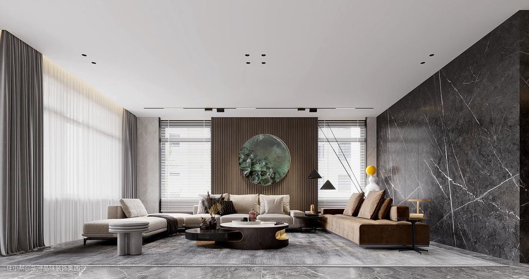 180平现代轻奢风,纯色大理石墙板打造背景墙,效果绝了