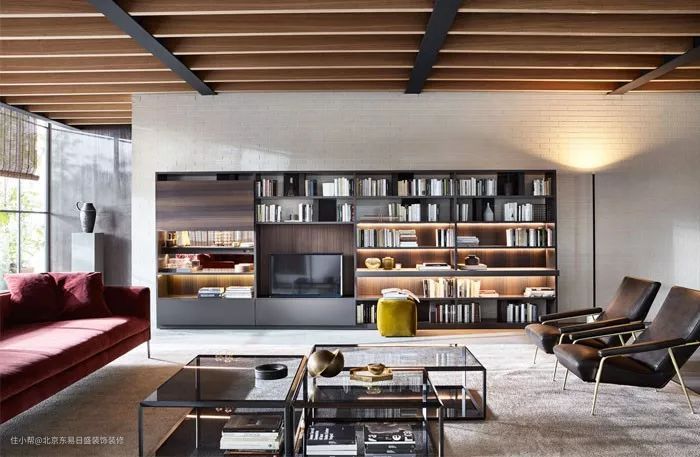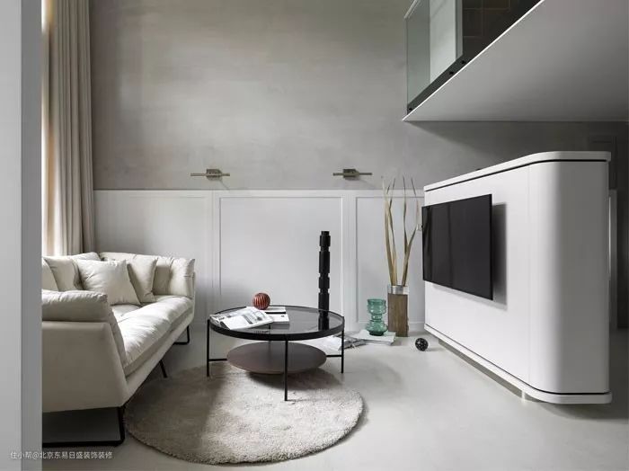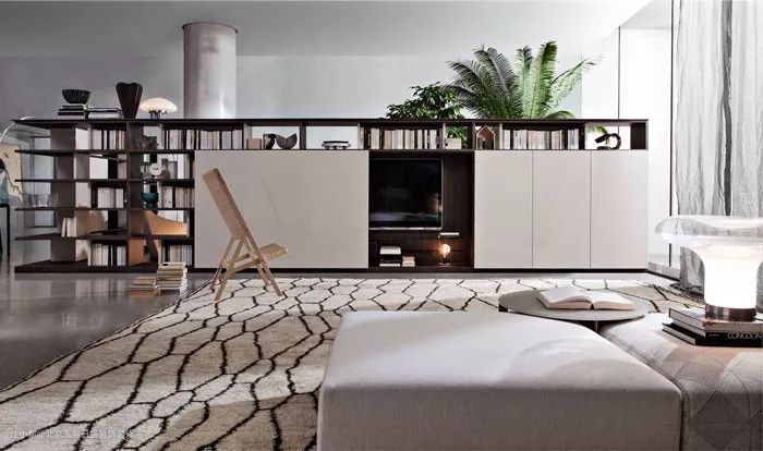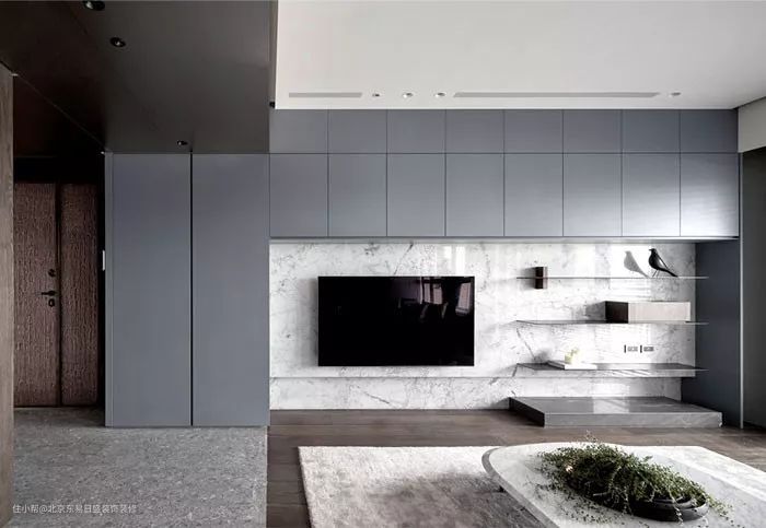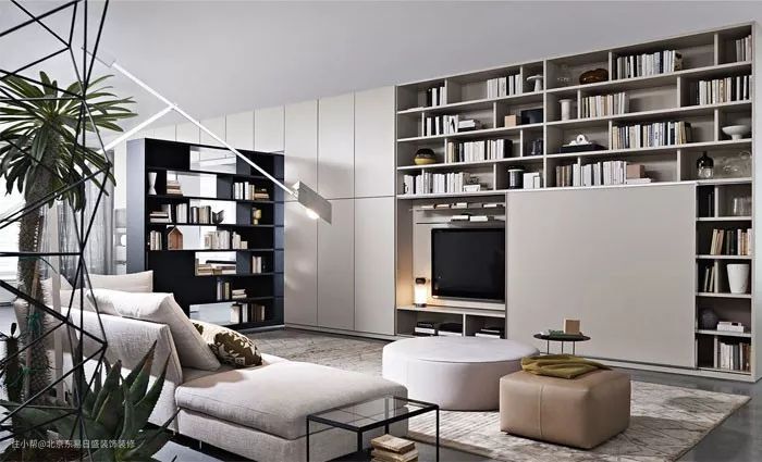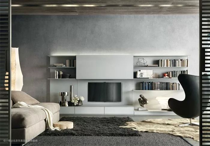 如果不喜欢极简风格的,可以再加一些设计独特的收纳柜、扁平或长线条的装饰柜,以及一些极具艺术感的小饰品、书籍、花器等等。