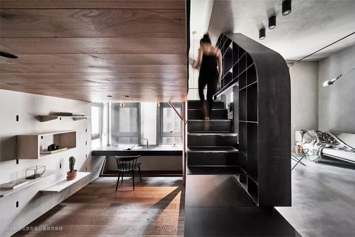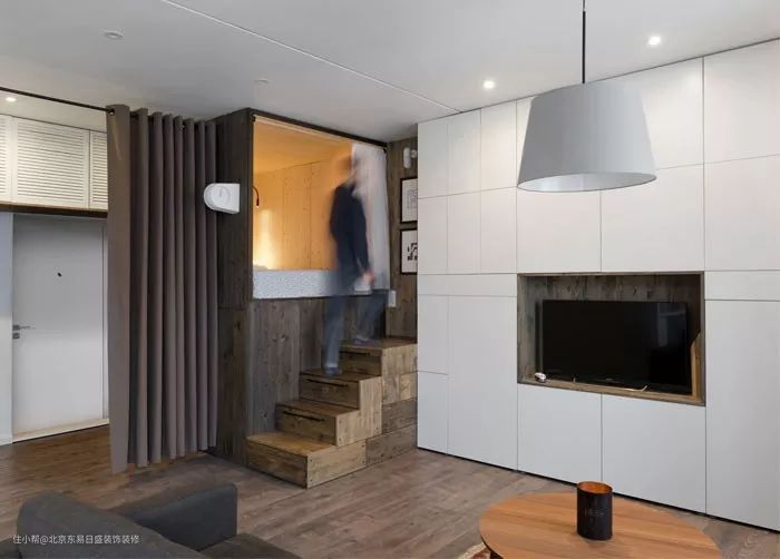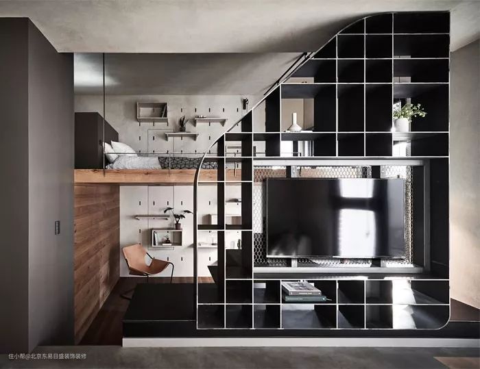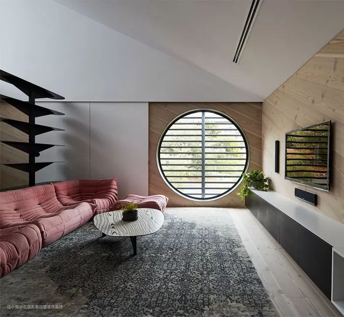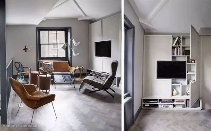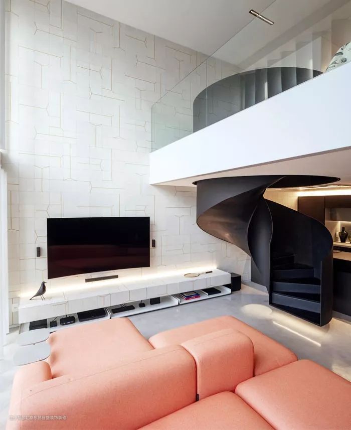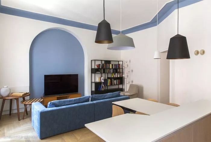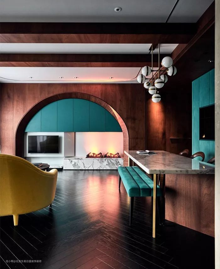 拱门把墙壁、储藏室、壁炉、电视机一一连接了起来,展现了都市浪漫主义的缩影。