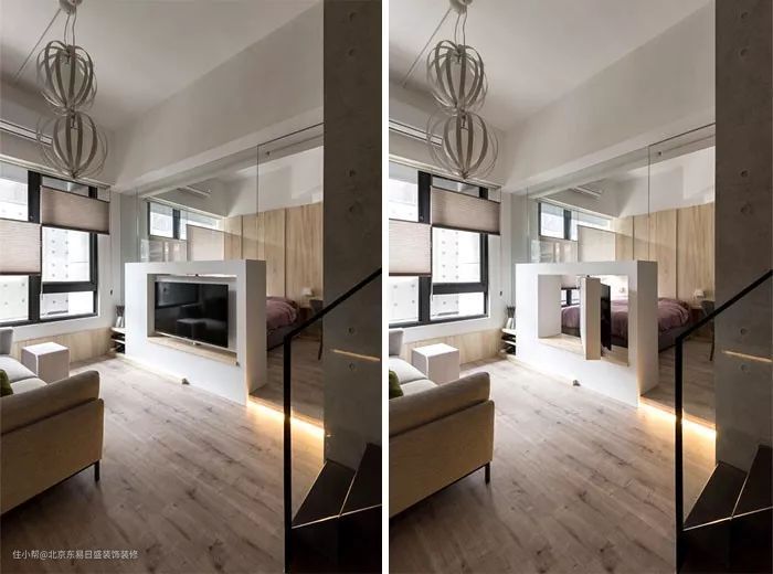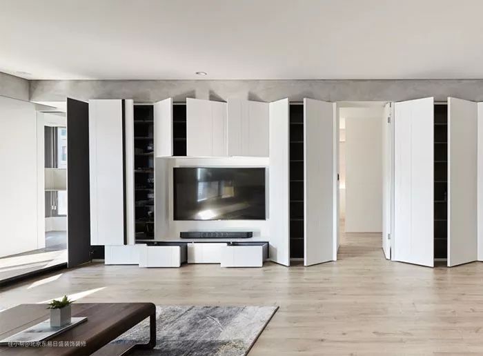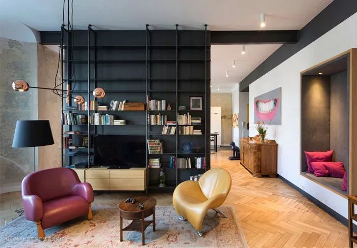 隔断板(墙)也适用大户型、大平层,能改善改善空间的流动性。当然,形式也可多样化:半墙、矮墙、中部镂空旋转式、底部添加收纳柜……