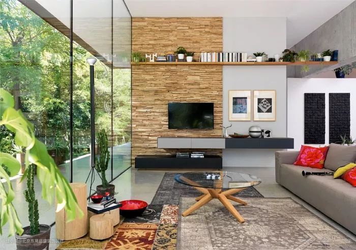 这两个例子,给我们展示了现代极简主义感的电视墙设计。