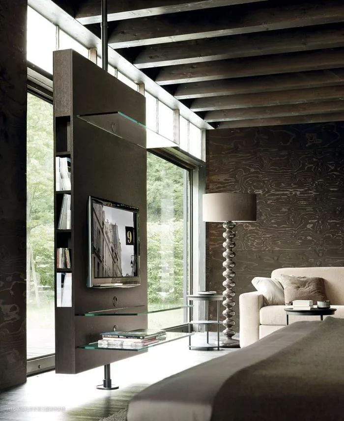 当然,这样的分隔电视墙,功能也不局限于区分空间,还可以作为收纳柜、照明系统的一部分,甚至作为桌子、橱柜等等。