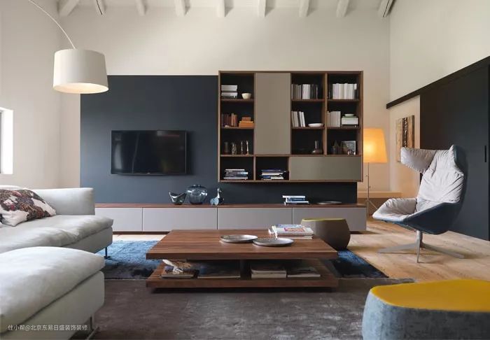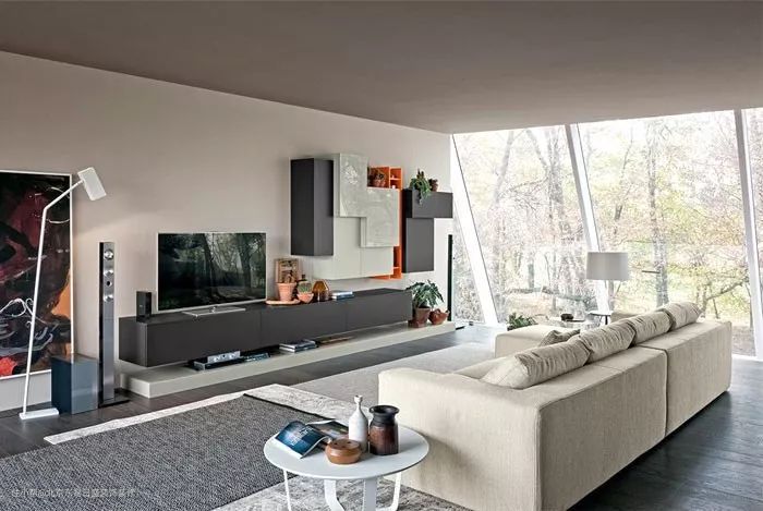最简单、最适合大多数家庭的,就是家具品牌推出的预制电视墙系列家具了。